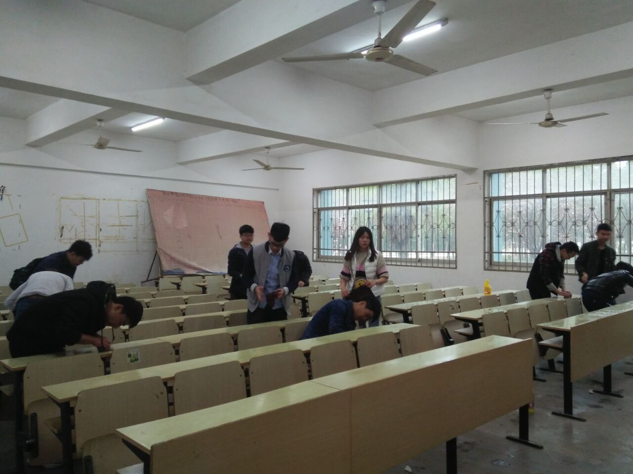 3月4日上午,计算机学院志愿者在计算机学院学生党支部书记陈劲松同志及全体支部成员带领下在北区3号教学楼固定教室开展了“清除课桌文化”的活动,我院50余名学生积极参与了本活动。