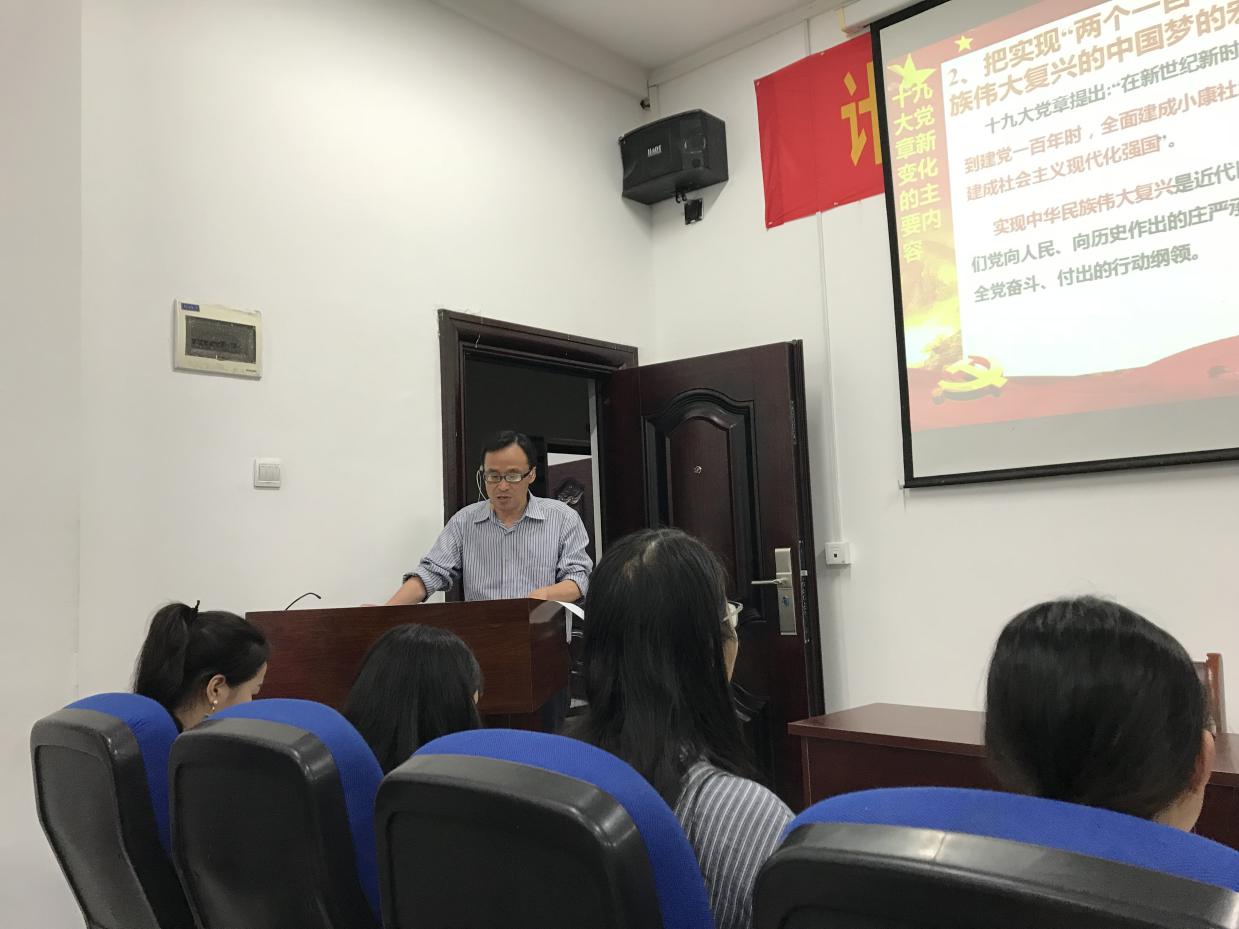 为认真学习贯彻落实党的十九大会议精神,贯彻学校党委关于总支书记讲党课的要求,54日晚,计算机学院党总支书记何中林为100余名学生党员和入党积极分子讲授了题为《浅论十九大党章的修改内容及特点》的讲座。