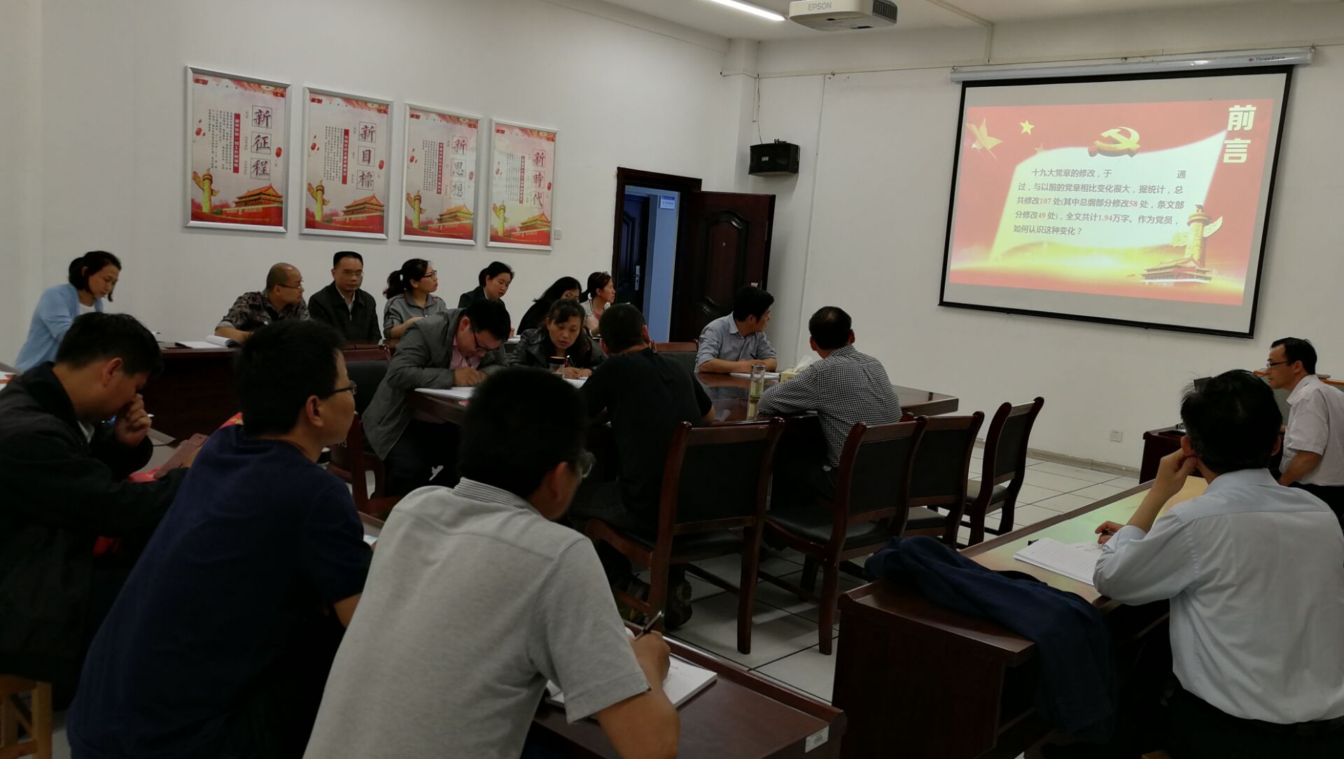 最后,党课在何中林教授和大家共同完成关于十九大党章修改的13个单选题、6个多选题、7个判断题的高潮中结束。通过本次学习大家对党章的修改有了深刻认识,一致表示在今后的工作中要坚定维护党章的权威,践行党章赋予的权力、义务和责任。