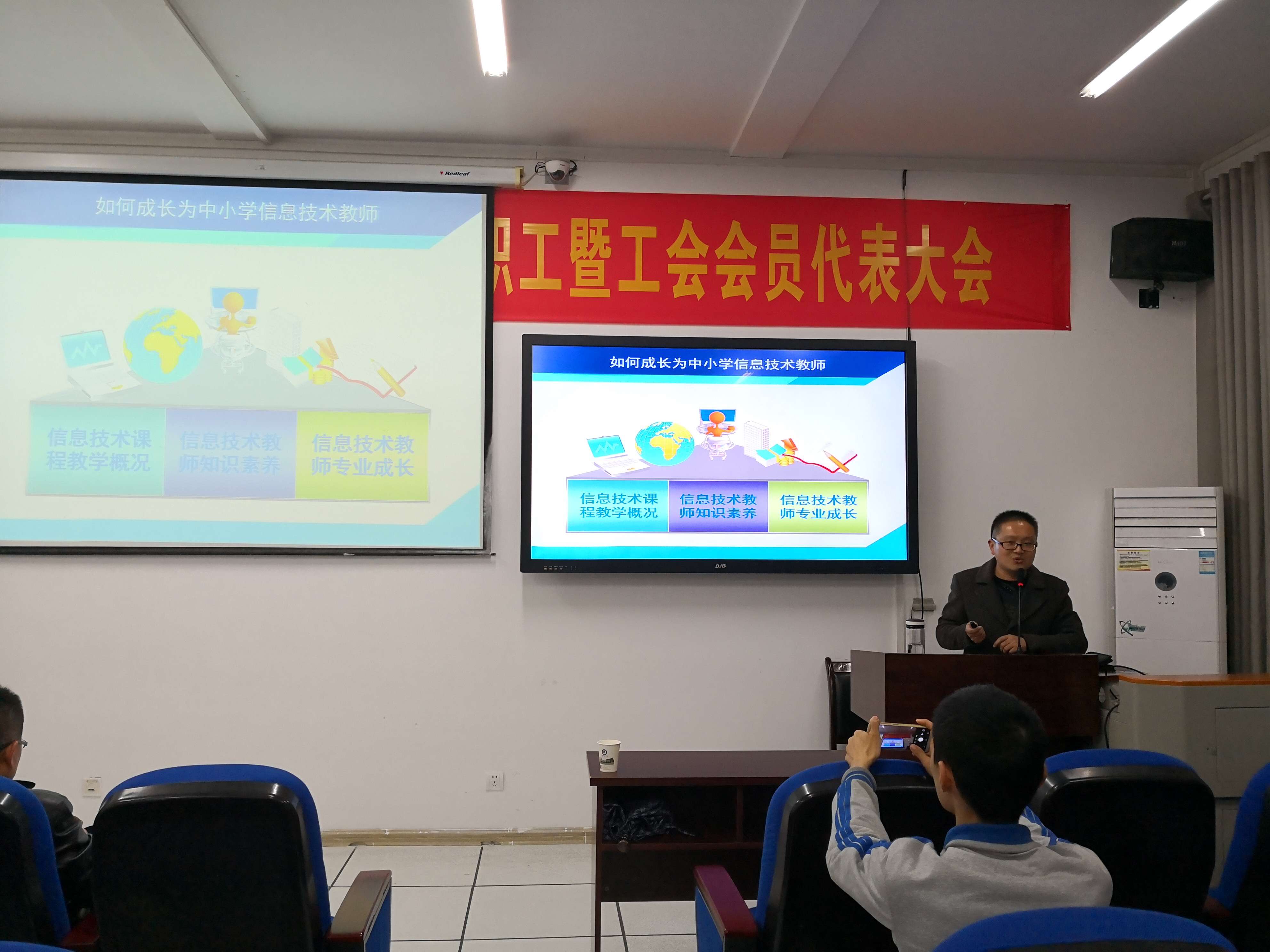 12月4日晚,计算机学院举行师范专业教育教学专题报告会,邀请黄冈市教育科学研究院研究员熊卜光作《路在远方,行在当下--中学信息技术课程开设与教师队伍建设》专题报告,针对中学信息技术课当前开设发展情况,中学信息技术课教师发展建设现状,以及中学信息技术课教师队伍需求进行全方位调研剖析;湖北省黄冈中学高级教师、信息技术奥林匹竞赛总教练董登丰作《如何成为合格的信息技术教师》专题报告,作为一名中学信息技术课教师,在师德、教学、育人及专业发展应具有的知识、能力结构、综合素养等,对中学信息技术学科发展前景的进行调研分析。