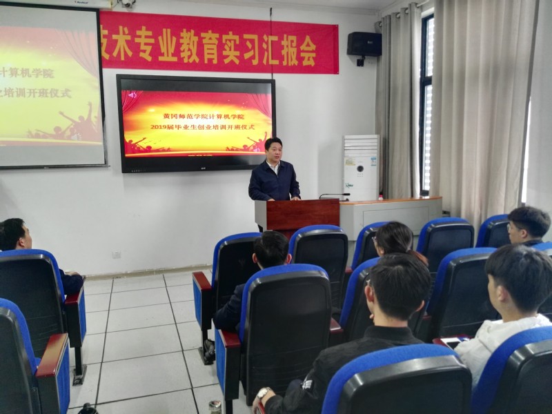 4月27日,黄冈市“创业就业培训进高校”伟德国际victor1946培训班开班典礼仪式在我校计算机学院会议室举行。黄冈市劳动就业管理局副局长肖庆华,计算机学院院长胡志华参加开班典礼仪式,招生与就业处处长郝进仕主持开班典礼仪式。