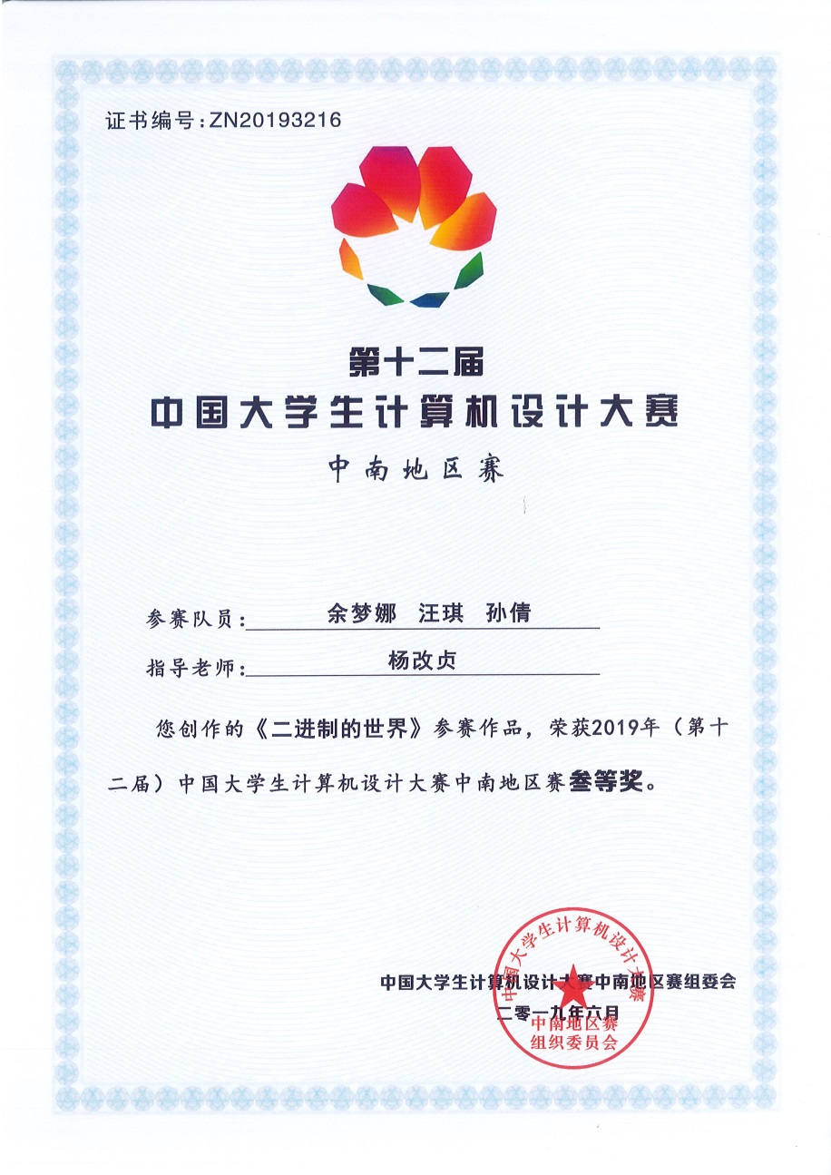 2019 年(第 12 届)中国大学生计算机设计大赛由 2018-2022 年教育部大学计算机课程教学指导委员会中国大学生计算机设计大赛组织委员会主办。该项赛事始创于2008 年,已经举办了1152场赛事。我国半数以上的原 211 大学、半数以上的原 985 大学参加了这一赛事。本次比赛的每件作品由三位专家评审,采取交叉、异地、匿名评审,对作品的评审关注点既有作品的原创性、知识容量,也有作品健壮性、技术难易度评价,对作品进行的是全方位的严格综合评审。