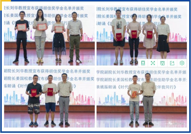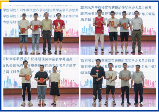 副院长刘华宣布获得胡佳奖学金名单并进行颁奖。