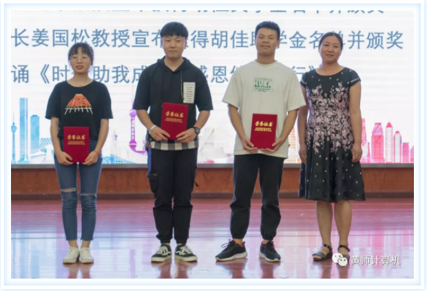 姜国松教授宣布获得胡佳助学金名单并进行颁奖。