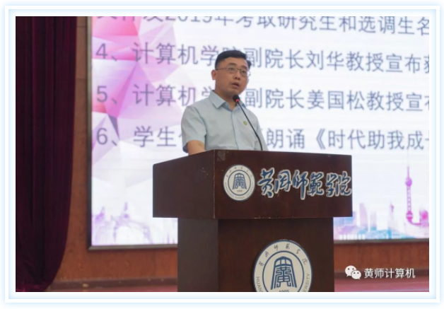计算机学院党总支书记张青、院长胡志华、党总支副书记陈琛、副院长刘华、姜国松、工会主席余志超副教授、计算机学院全体师生参加此次典礼。典礼由罗婧主持。