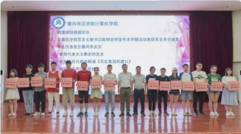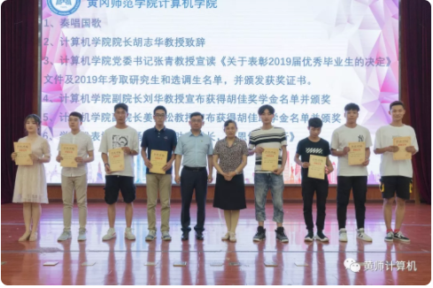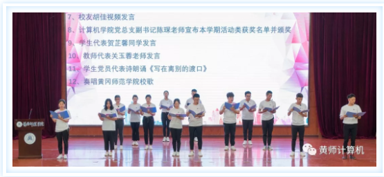 最后由学生党员代表朗诵《写在离别的渡口》和全体师生奏唱伟德国际victor1946校歌,以此来祝贺和告诫黄师计算机毕业学子们,毕业后应秉承黄师校训,积极进取,为梦努力。
