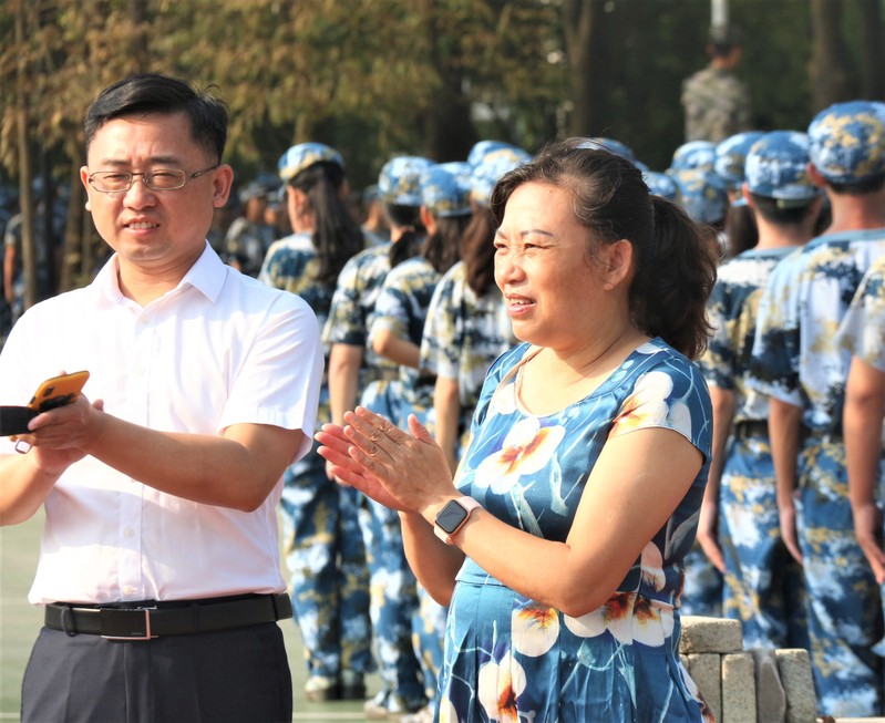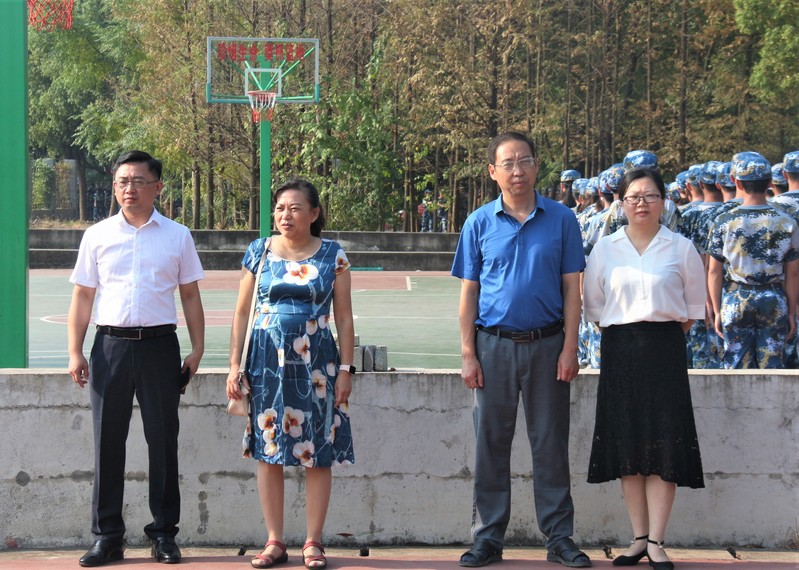 9月10日,2019级新生军训进入第四天。计算机学院党总支书记张青、院长胡志华,副院长刘华、党总支副书记陈琛来到军训现场亲切看望新生。