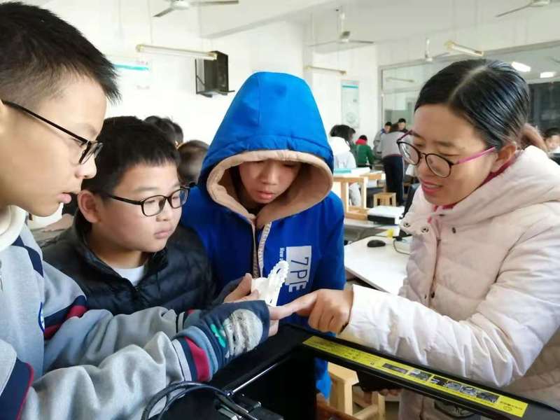伴随着张老师的讲解,一个个人工智能技术让同学们大为惊叹,从“AI+生活”“AI+娱乐”到“AI+金融”,精彩纷呈的课堂内容让同学们对人工智能技术充满了好奇,紧接着同学们在实验室老师的指引下实地参观学习了实验室里的“3D打印机”、“可编程无人机”“编程机器人”等代表着未来趋势的人工智能知识学习教具,为他们求知打开了一扇新的大门。