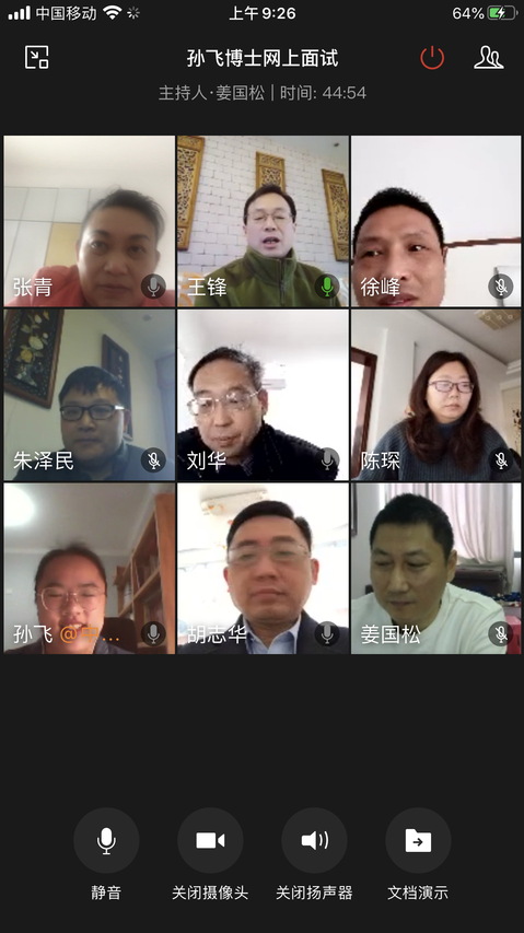 46日,计算机学院组织了拟引进博士的面试工作,校党委常委王锋、人事处副处长徐峰、学院相关领导老师作为评委参加。鉴于目前新冠肺炎疫情防控的形势,本次面试采取线上视频形式进行。