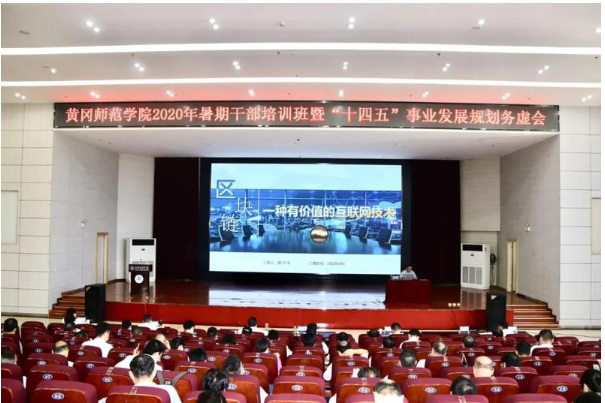 8月31日下午,计算机学院院长胡志华教授在厚德楼学术交流中心为学校2020年暑期干部培训暨“十四五”事业发展规划务虚会全体参会人员作《区块链:一种有价值的互联网技术》专题报告,报告会由党委常委、组织部部长王锋主持。