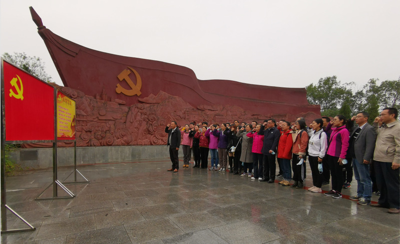在陈谭秋故居的宣誓广场浮雕前,全体党员面对党旗,举起右手,共同重温入党誓词。在陈潭秋故居,每到一处,大家都认真参观、详细了解党的光荣历史,八间展室,260余幅照片,50余件文物,百份史料等文史资料真实详尽还原了陈潭秋“少年求学,立志救国” “革命先驱,激流勇进”, “转战南北,不折不挠” ,“为党为民、血洒边疆”的英雄壮举。
