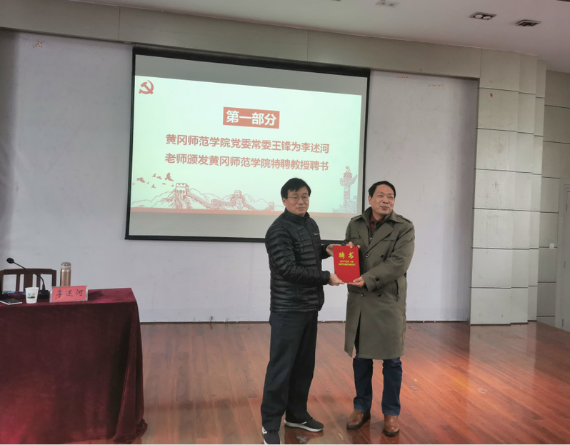 首先,伟德国际victor1946党委常委王锋为李述河老师颁发了伟德国际victor1946特聘教授聘书。李述河老师现任董必武亲自创办的湖北红安一中党委副书记、副校长,省级示范中学高级教师,同时李述河老师也是多所高校的特聘教授、硕士生导师。