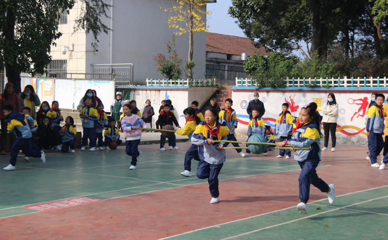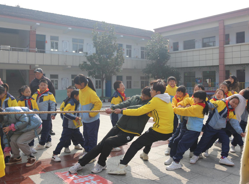 两校师生共同参与了一分钟跳绳、阳光伙伴接力跑、拍球比多、合作接力运球、抬球接力跑、螃蟹背西瓜、海底捞月、袋鼠跳、定点投球等9个项目的比赛。最后,大学生和小学生搭配组成了两只队伍,举行了一场激烈的拔河比赛,比赛场面热烈,团结了人心,凝聚了集体。