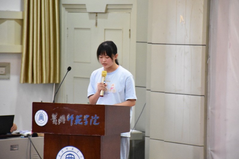 新生代表是来自计算机2104班的闵晓蕊同学,她首先感谢了为新生入学做出精心安排的领导老师以及各位学长学姐,表达了对大学生活的美好憧憬,也希望我们能够踏踏实实过好每一天,时时刻刻准备好,一同为实现心中的理想而奋斗!