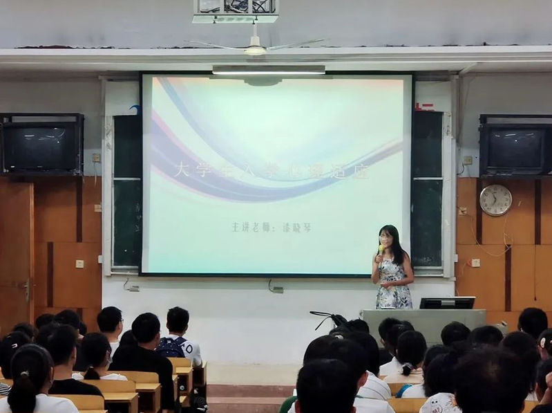 随后,漆老师从“大学生适应问题的类型是什么”“为什么会产生这种现象”“如何用科学的方法解决心里的困惑”三个方面展开讲话。漆老师列举了多个具有代表性的实例来反映大学生入学后常见的问题,并从人际交往,生活习惯,教学模式等方面提出专业见解。