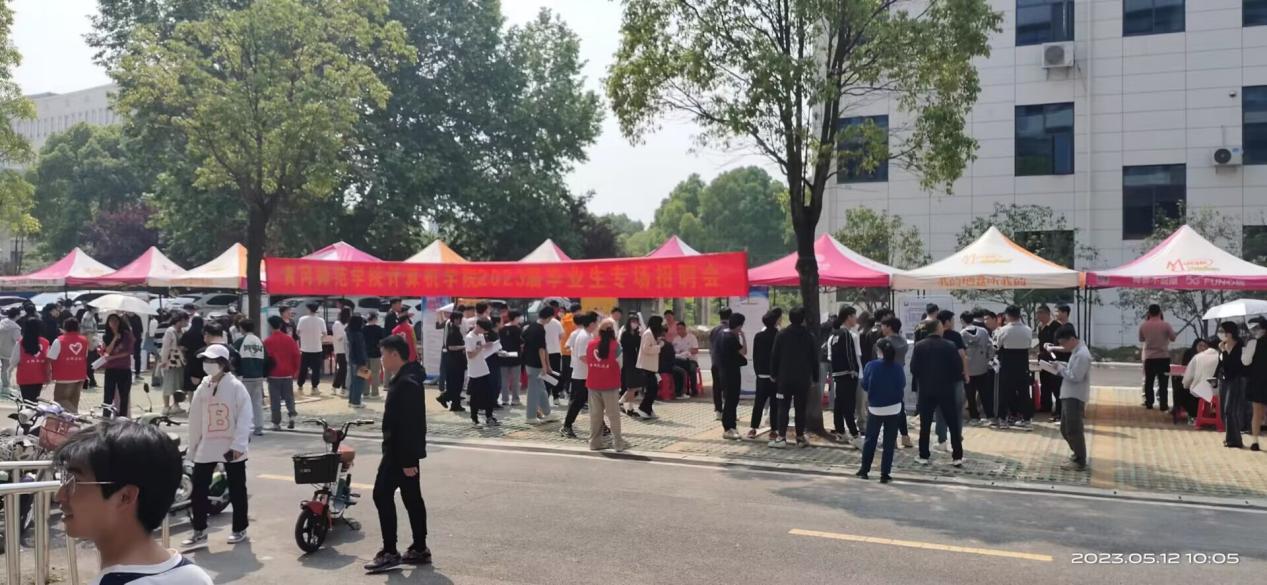 为贯彻落实二十大报告指出的强化就业优先政策,助力计算机学院2023届毕业生高质量就业,计算机学院于5月12日上午在逸夫楼门前举办了2023届毕业生专场招聘会。校党委常委、副校长夏庆利,招就处处长郝进仕、副处长许春妮莅临指导工作,了解招聘情况。计算机学院全体领导班子成员、毕业班班主任、辅导员、全体毕业生参加了招聘会。