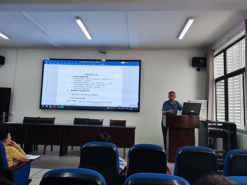 为了更好的推进工程教育认证工作,结合2023年上半年期末工作,计算机学院于2023年5月31日下午在逸夫楼305召开了全院教师大会。会上结合工程教育认证要求和期末资料要求,由副院长刘华、教研室主任周静、许元朋三位同志分别就课程目标、课程目标达成度计算、试卷审批表、试卷AB卷、课程达成度分析报告等期末资料应该如何做、如何写才能符合工程教育认证要求进行了详细的培训。