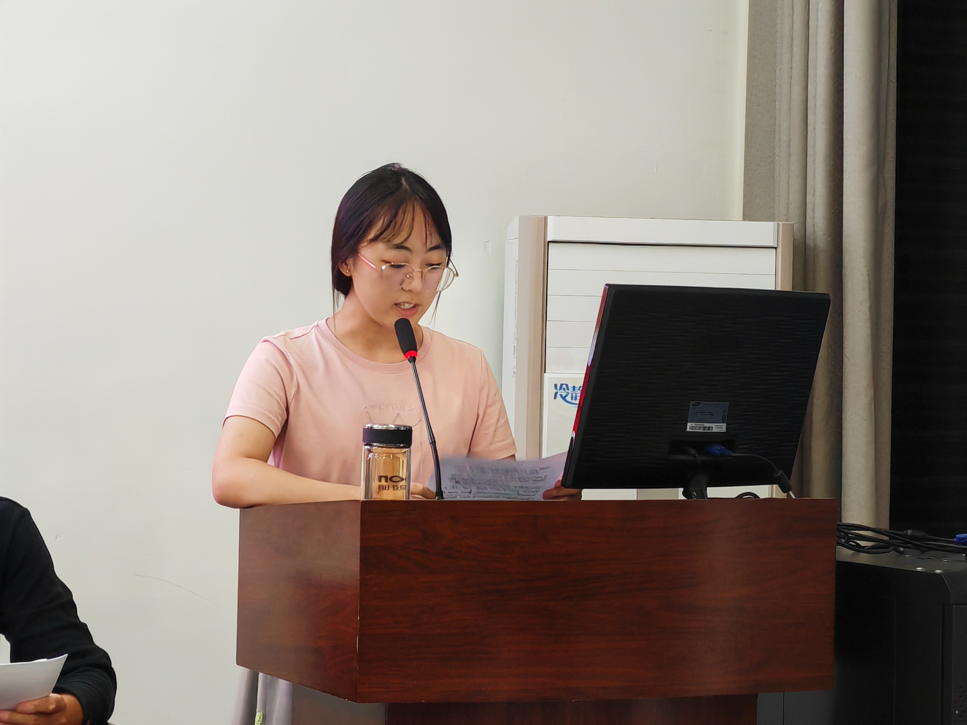 第二项:学生第一党支部书记鲁思婷老师宣读本期入党积极分子培训班学员、班委名单