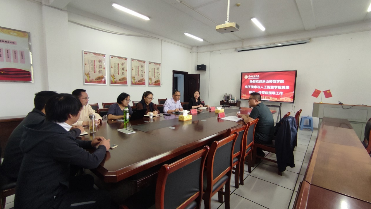 10月25日,乐山师范学院电子信息与人工智能学院副院长黄果教授来计算机学院参观交流工作。我院院长何中林、副院长关玉蓉及全体教研室主任一同参与交流活动。