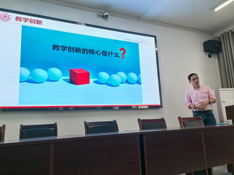 苏教授首先从教学创新的内涵与底层逻辑谈起,然后深入解读了教学创新大赛备赛要求与关键点,最后为大家讲解了面向未来的教学创新路径,他认为,落实学生中心理念,需要科学构建高效的教育教学新模式、新方法和新途径,作为教师要勇于跳出固有知识及经验的束缚,与学生构成学习共同体,一起为课程建设和学生成长提供动力。讲座结束后,多名教师先后就教学创新等课程建设相关问题与苏教授进行了深入的交流和探讨,苏教授结合自身的经验进行了悉心的解答与指导,现场交流亲切,气氛热烈。