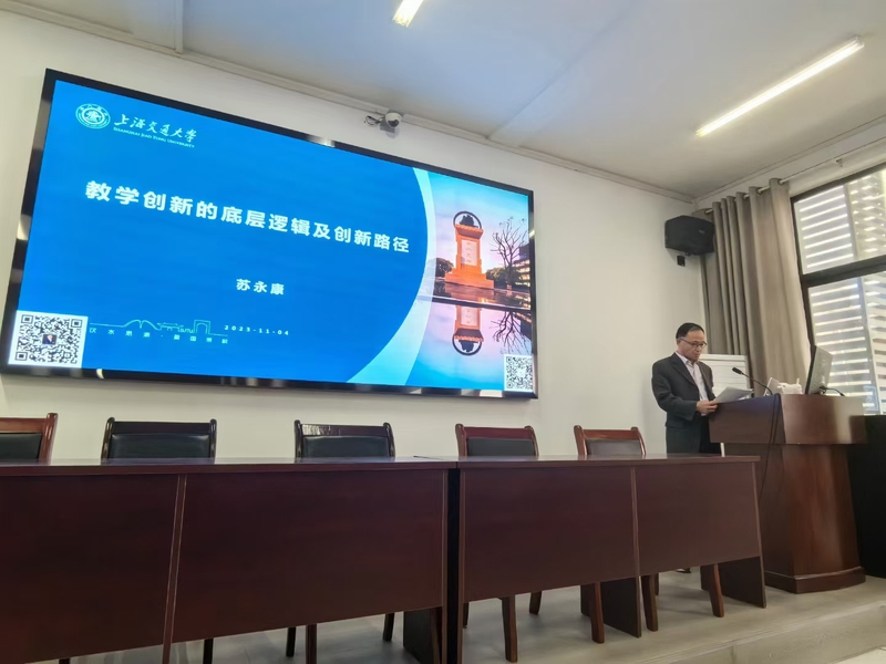 为深入推进以学生为中心的教学改革,积极探索课堂教学模式创新。11月4日,计算机学院特邀上海交通大学苏永康教授,来院开展以“教学创新的底层逻辑及创新路径”为主题的讲座。讲座由计算机学院院长何中林教授主持,计算机学院全体教师参加了现场学习与交流。何院长对苏教授的到来表示热烈欢迎,并强调“教学创新是人才培养的基石,邀请行业专家来校指导交流,有助于老师们开阔视野,更好进行教育教学改革。”