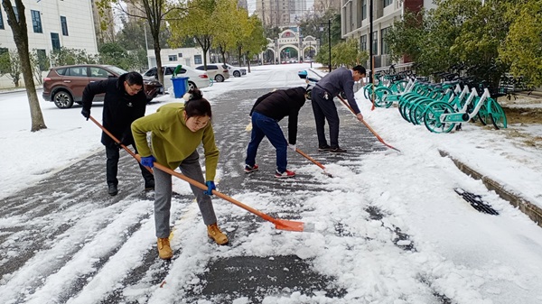 黄冈市今日连续降雪,面对大雪冰封的路面,为保障师生出行安全,222日,计算机学院积极响应校党委的号召,迅速组织学院党员干部志愿者清理校内道路,以切实行动为校园安全出行保驾护航。