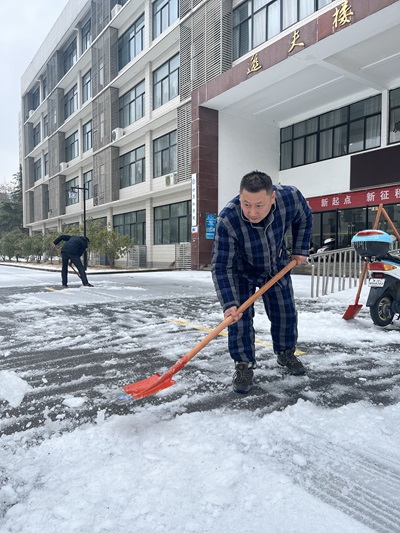 在此次扫雪铲冰活动中,大家齐心协力、通力合作,通过反复清扫共同完成了校园道路清洁工作,为学校顺利开学提供了保障。