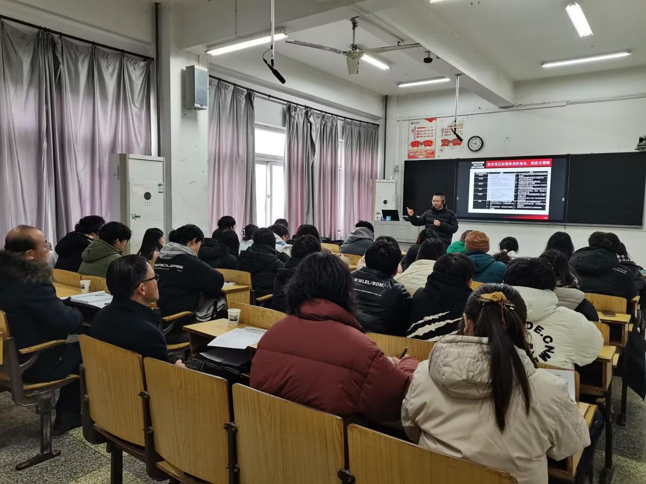 夏庆利来到博学楼217教室,与学生一起聆听了杨洋主讲的《软件项目管理与组织》课程。杨洋老师以软件项目开发作引入,深入浅出地讲授了软件项目管理的核心方法体系、软件管理思维能力、软件管理模型的应用等重要内容。夏校长对杨老师授课情况给予充分肯定并提出中肯意见。他指出,青年教师要多思考、多学习、多总结,在讲好课程内容的同时也要提升育人意识,注重课堂教学模式的改革与创新,积极运用信息技术赋能智慧课堂,让课堂活起来、动起来,让学生忙起来。