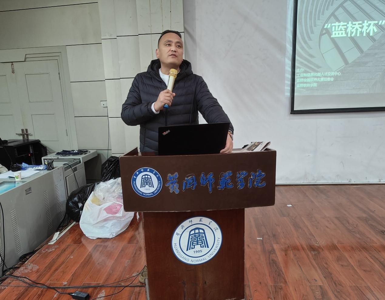 本次大会还请到了北京国信蓝桥学院刘东升院长以及计算机学院竞赛指导办公室主任肖飞老师,从就业形势、蓝桥学院就业实训项目以及往届毕业生就业案例分享等方面作报告。