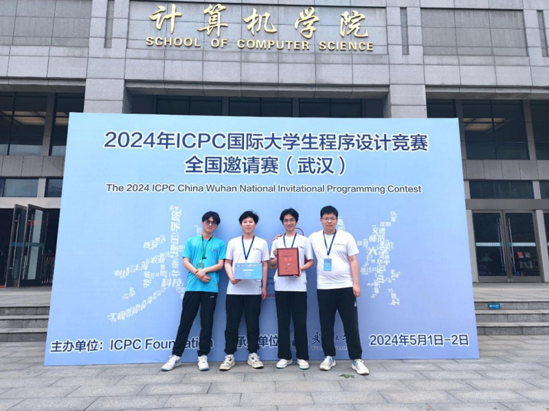 5月2日,2024年ICPC国际大学生程序设计竞赛全国邀请赛在武汉大学隆重举行,我校ACM实验室成员张荣臻、张泰林、刘翔宇组成的“巴巴圣德”参赛团队历经5个小时的激烈角逐,在教练关玉蓉老师的指导下,勇夺国赛铜牌同时该队选手在今年4月成功摘得省赛奖牌。