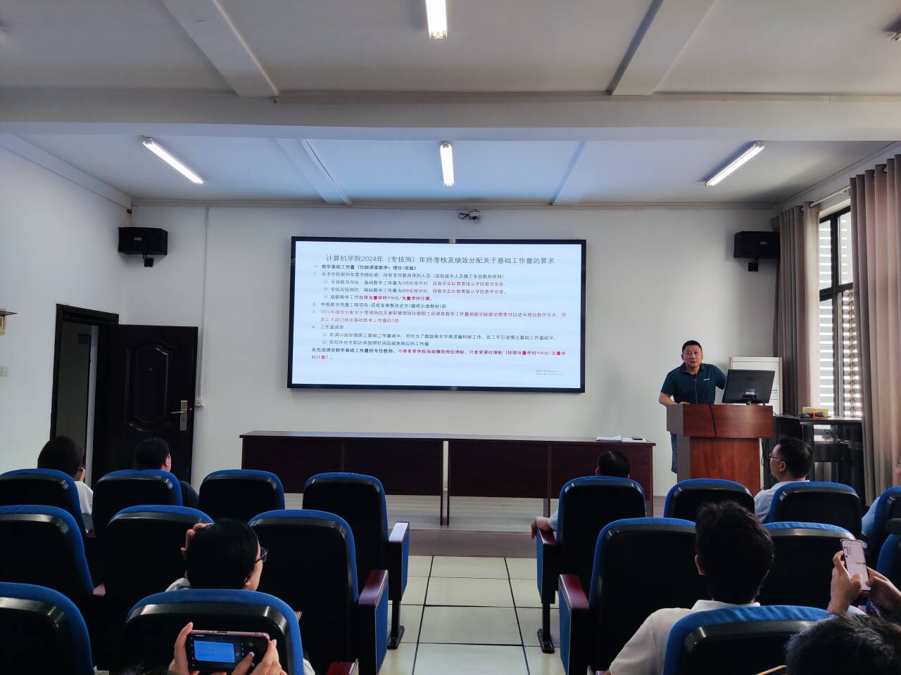 首先召开计算机学院2024年第二次教职工代表大会,姜国松副院长对《计算机学院专任教师教学科研工作年度考核调整方案》作详细解读,明确了学院专任教师基础工作量核定标准。全体与会教职工代表对《方案》进行了审议。经与会教职工代表举手表决,超过一半教职工代表赞成《计算机学院专任教师教学科研工作年度考核调整方案》,《方案》生效。