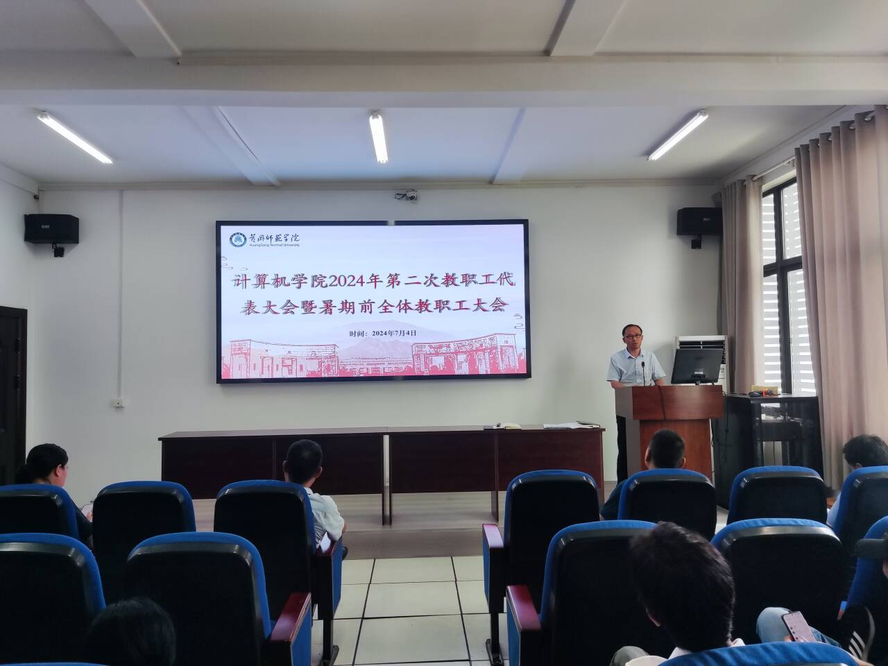 7月4日,计算机学院于逸夫楼308会议室召开2024年第二次教职工代表大会暨暑期前全体教职工大会,会议由学院党委书记邓默耘主持,全体教职工参加。