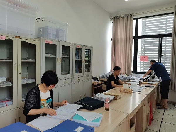 随后专家组一行与学院领导及相关教师进行了现场访谈与交流,并通过查阅制度文件、课程考试试卷、课程设计、毕业设计、课程实习实训成果等对自评报告内容进行了检查。