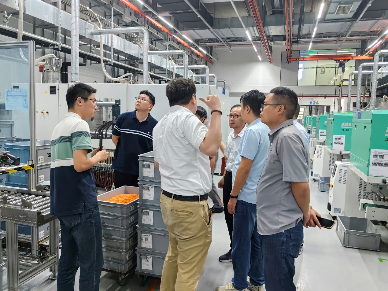 考察团首先参观了菲尼克斯电气中国公司二号基地。在智能产教融合发展经理朱凌飞的带领下,团队深入了解了数字孪生技术在智能制造中的应用现状。菲尼克斯电气中国公司展示了其全数字化排产及无人生产车间,展现了数字孪生技术在现代化生产中的巨大潜力。团队成员现场感受到了数字孪生技术如何与智能制造结合,推动生产流程的现代化和智能化。