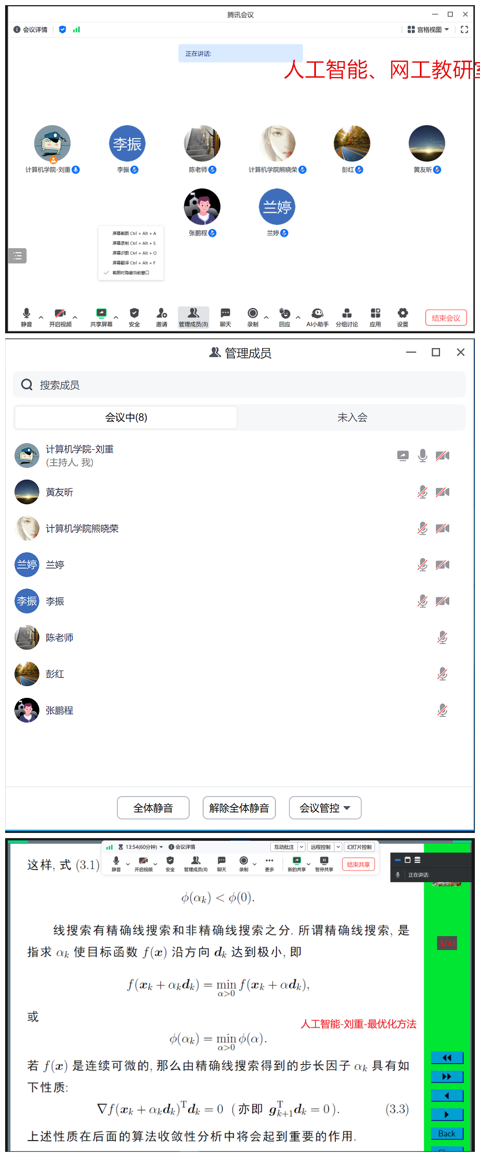 各教研室采用线上会议与讨论相结合的方式开展活动。从讨论2024年下半年教研室工作计划、准备开学第1天上课准备和集中听课研课、讨论学习2023版人才培养方案和课程大纲、展演和研讨课程课件及线上课程建设等方面进行。