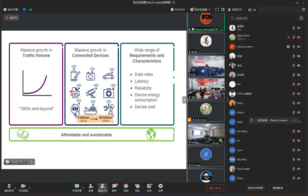 来自英国利物浦约翰摩尔大学的Hoshang Kolivand副教授则带来了关于“下一代无线网络架构”的精彩讲解,分析了5G及未来6G无线通信技术的发展趋势和挑战。法国上阿尔萨斯大学的Pascal Lorenz教授也分享了他在无线网络架构设计中的创新思考,讨论了如何通过新一代网络技术提升全球通信网络的效率与性能。