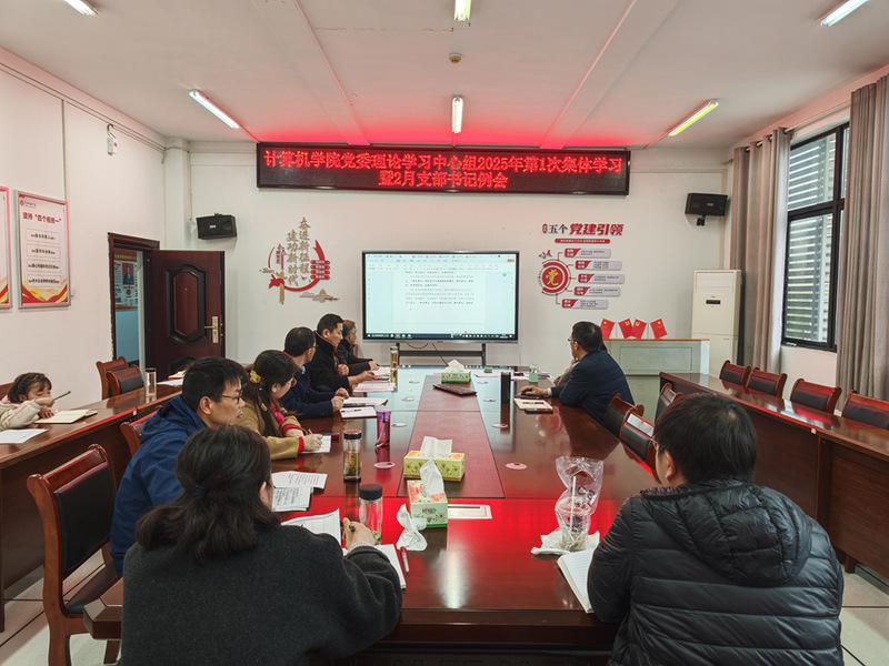 2月28日,计算机学院于逸夫楼305会议室召开学院党委理论学习中心组2025年第1次集体学习暨2月支部书记例会。学院党委委员、基层党支部书记参加了会议,会议由学院党委书记邓默耘主持。