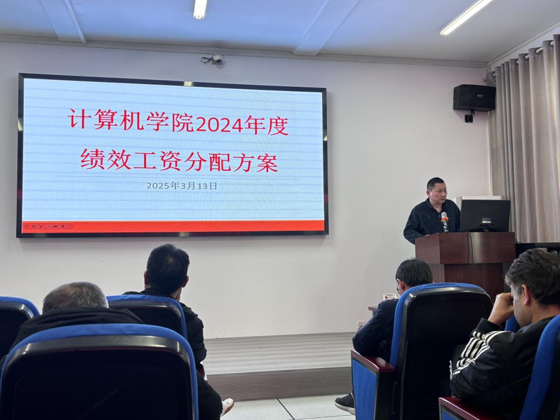 大会第四项议程,副院长姜国松对《计算机学院2024年度绩效工资分配方案》作解读。姜院长强调学院绩效工资分配方案以贡献论奖惩,突出成果导向和公平公正,并详细解读了具体分配细则:包括师资编制核算、岗位绩效分配、科研奖励、教学评价奖励等,明确了各类人员的分配标准和调整依据。