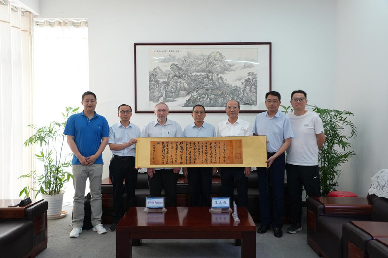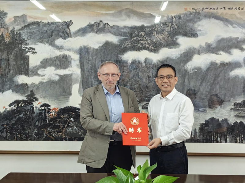 接见会后,漆昌柱校长代表学校向Witold Pedrycz院士赠送了象征黄冈名片的“寒食帖”书法作品,并向Witold Pedrycz院士颁发了伟德国际victor1946客座教授聘书。