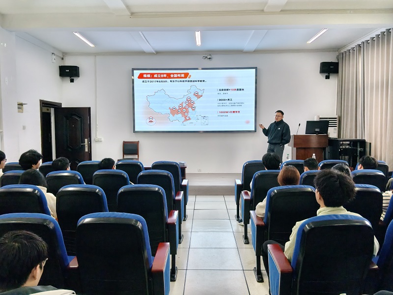 今年1 月,学院班子成员、就业辅导员一行专程赴武汉走访核桃编程中电智谷武汉分公司,围绕人才培养、实习就业、课程共建等深入交流,精准对接企业岗位需求,达成多项合作意向,为本次宣讲会顺利举办奠定坚实基础。宣讲会上,核桃编程周煜老师详细介绍企业发展、业务布局、招聘岗位、薪酬福利及职业发展通道,重点解读编程班主任、教研等岗位要求,现场解答同学们关于能力培养、实习转正、晋升路径等问题。